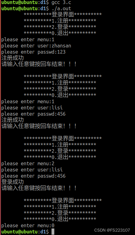 printf("注册成功\n");