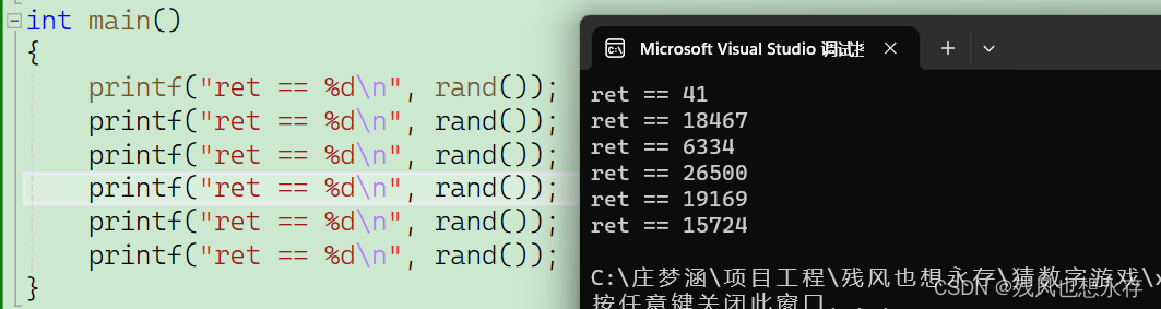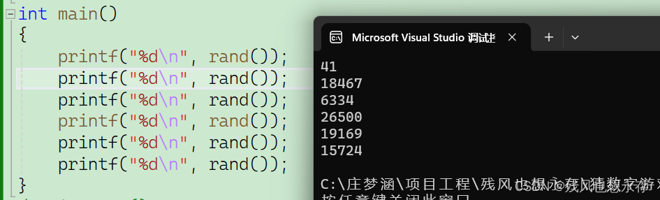 那为什么会产生如此的效果呢?是因为rand函数是依靠基准值种子进行运算产生的随机数,所以我们要产生真的意义上的随机数,就得让这个种子是变化的。