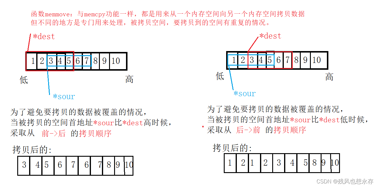 - 函数功能:将stc指向的空间数据,连续拷贝count个字节的大小到指针dest所指向的对象中,并会返回一个dest所指向空间的起始位置。(专门用来处理dest与str的空间有重叠的情况)