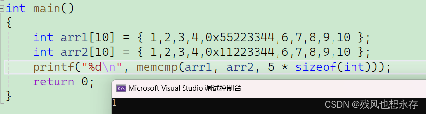 - 函数声明:int memcmp( const void *buf1, const void *buf2, size_t count );