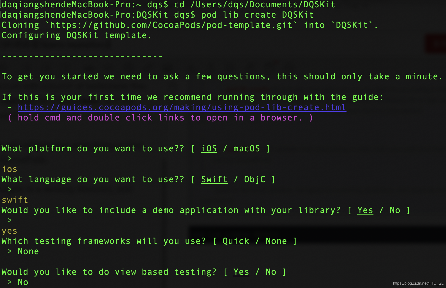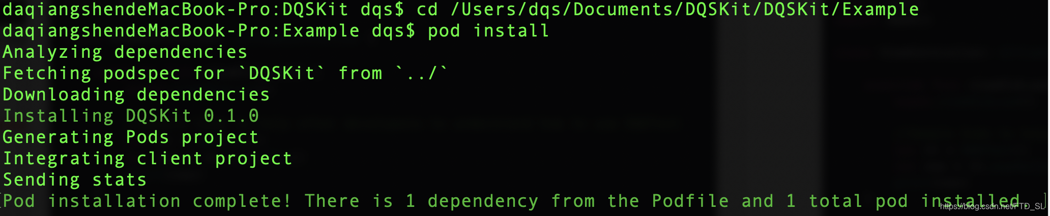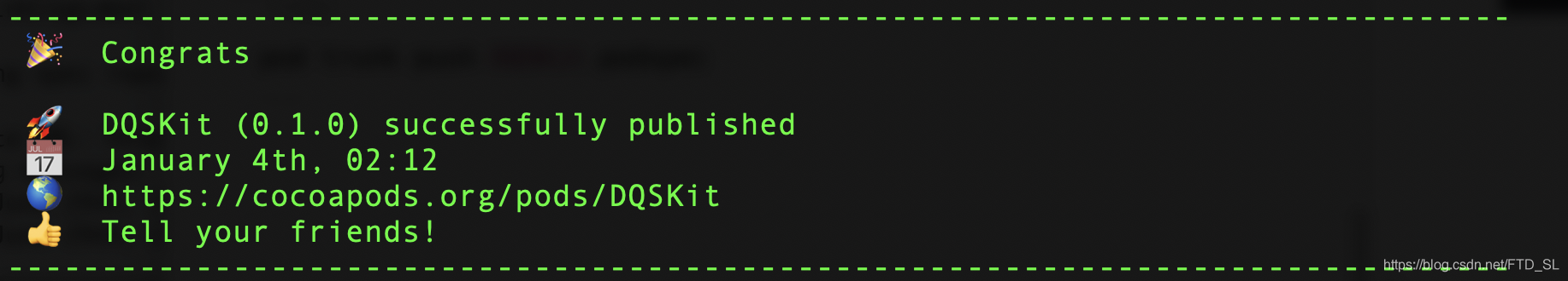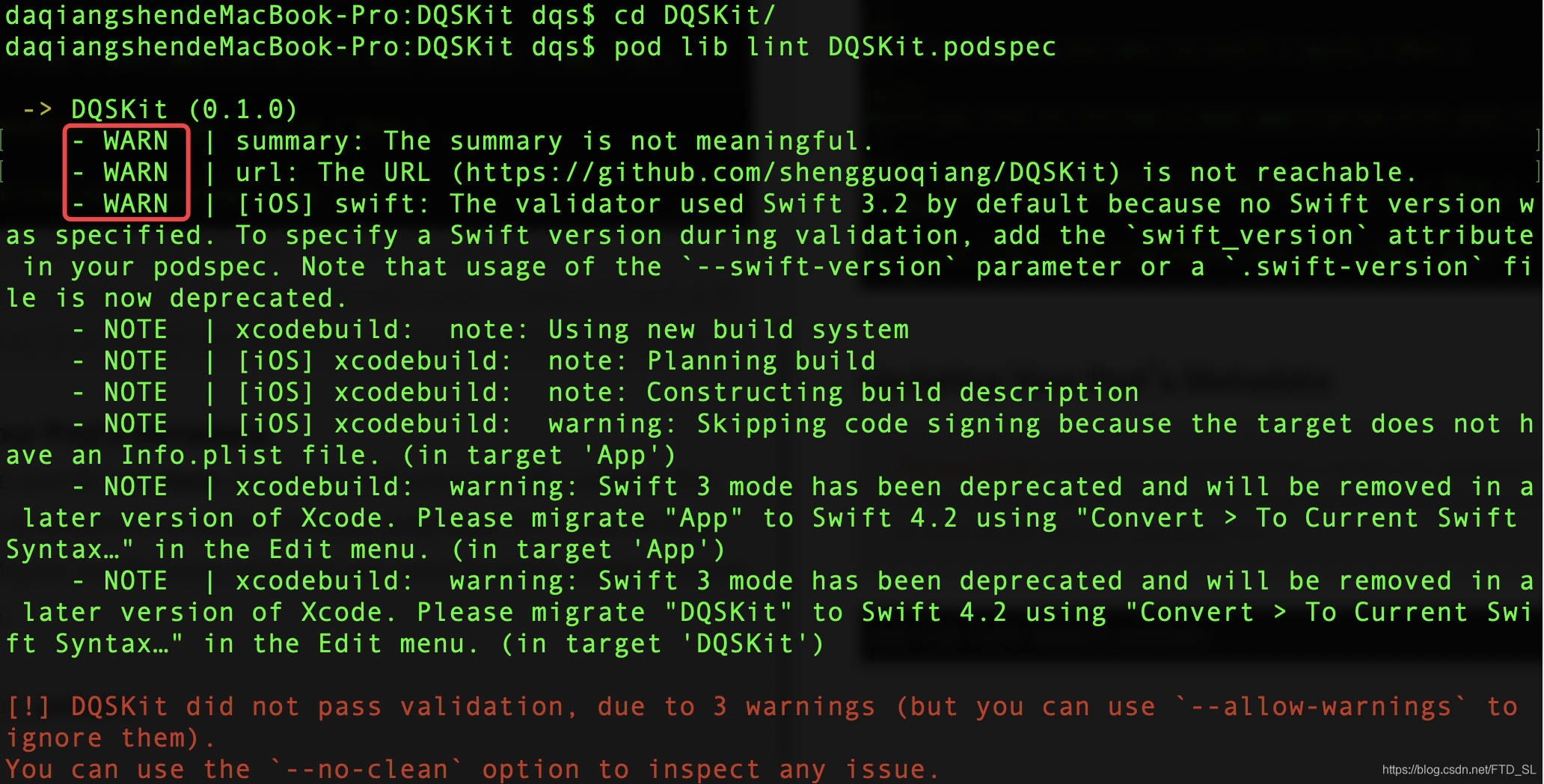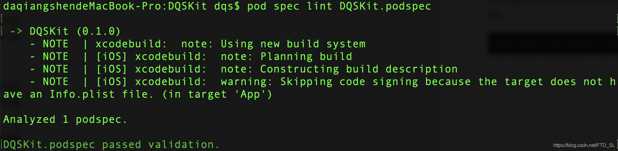 Finally, push the spec to the Specs repository by executing the following command:pod trunk push DQSKit.podspec