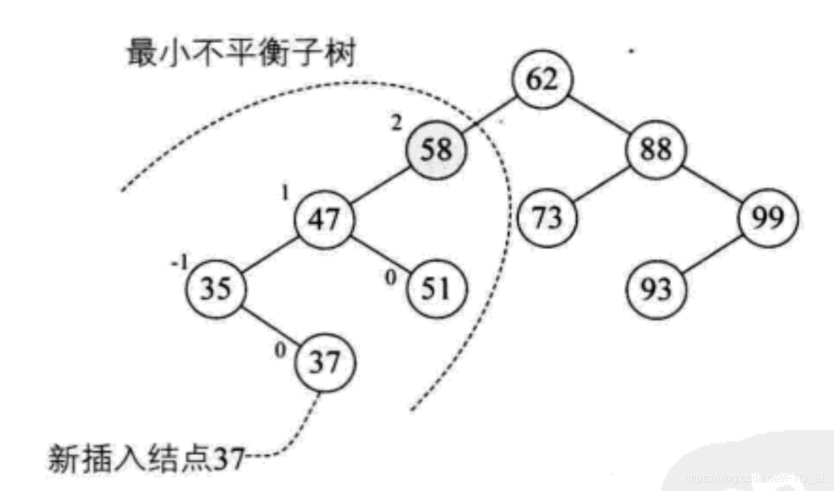 距离插入结点最近的,且以平衡因子绝对值大于1的结点为根结点的子树,我们称为最小不平衡树。