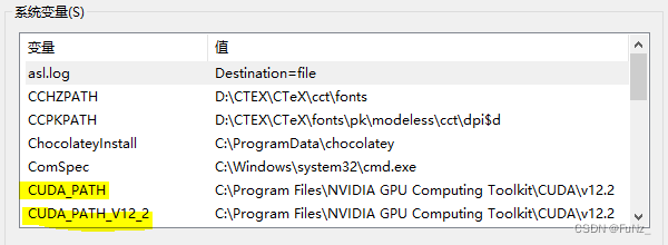 安装结束后查看系统环境变量,有了CUDA_PATH、CUDA_PATH_V12_2