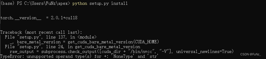 Windows 10 环境下安装apex报错:TypeError unsupported operand type(s) for +: “NoneType“ and “str“