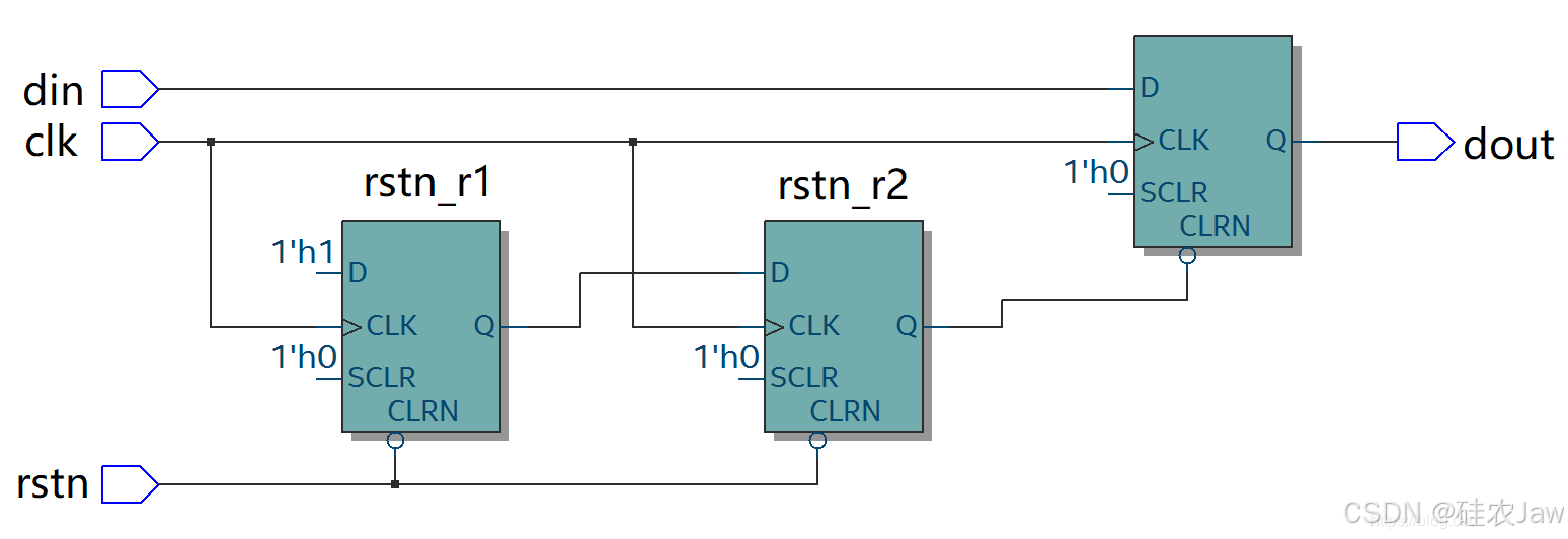if (!rstn_r2) dout <= 1'b0; //同步复位