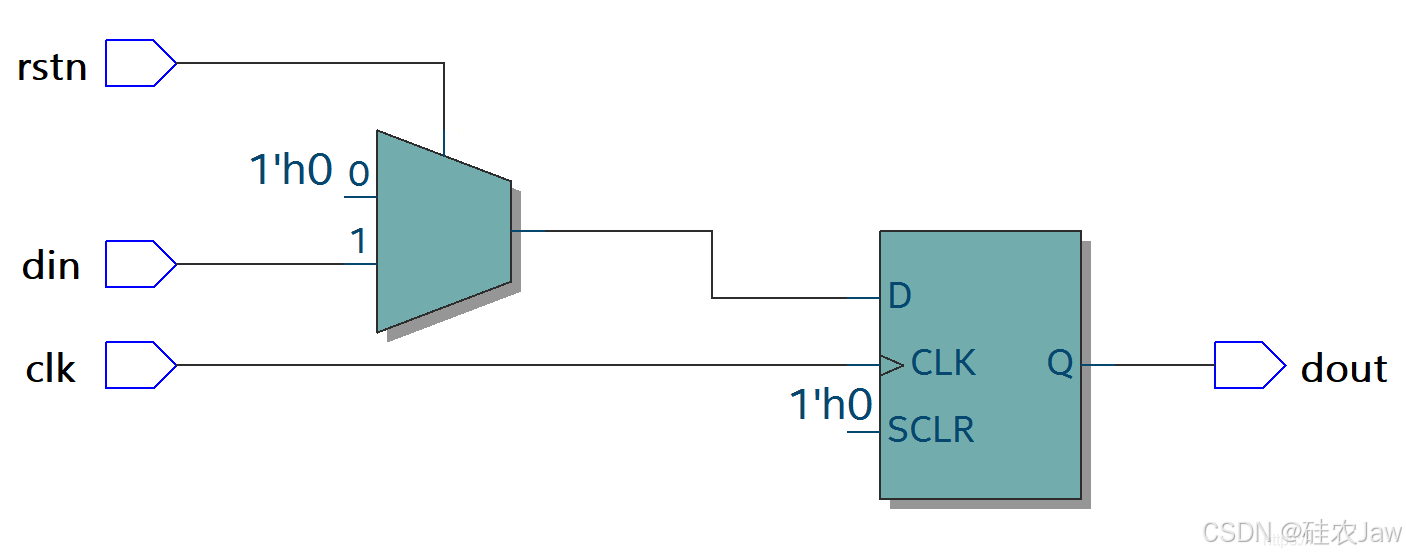 if(!rstn) dout <= 1'b0 ; //rstn 信号与时钟 clk 同步