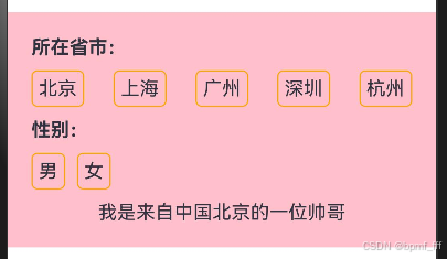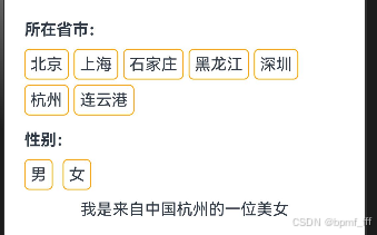 Text(`我是来自中国${this.selectCity}的一位${this.descGender}`)