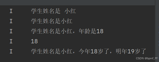 console.log(`学生姓名是${name},今年${age}岁了,明年${age+1}岁了`);