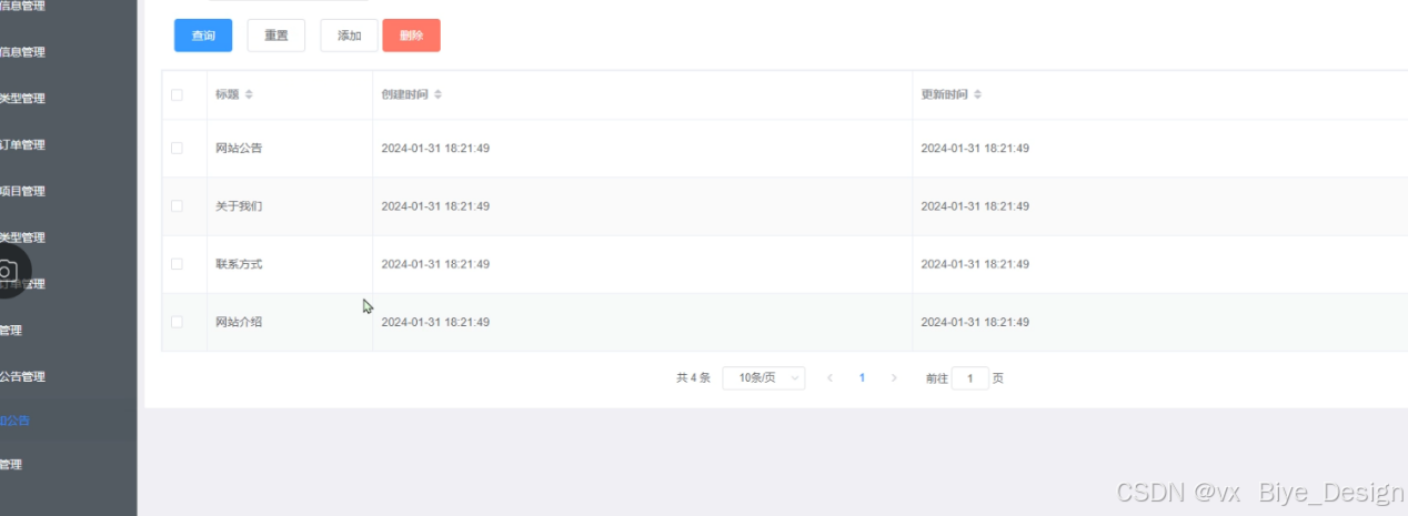 通知公告管理关键代码如下: