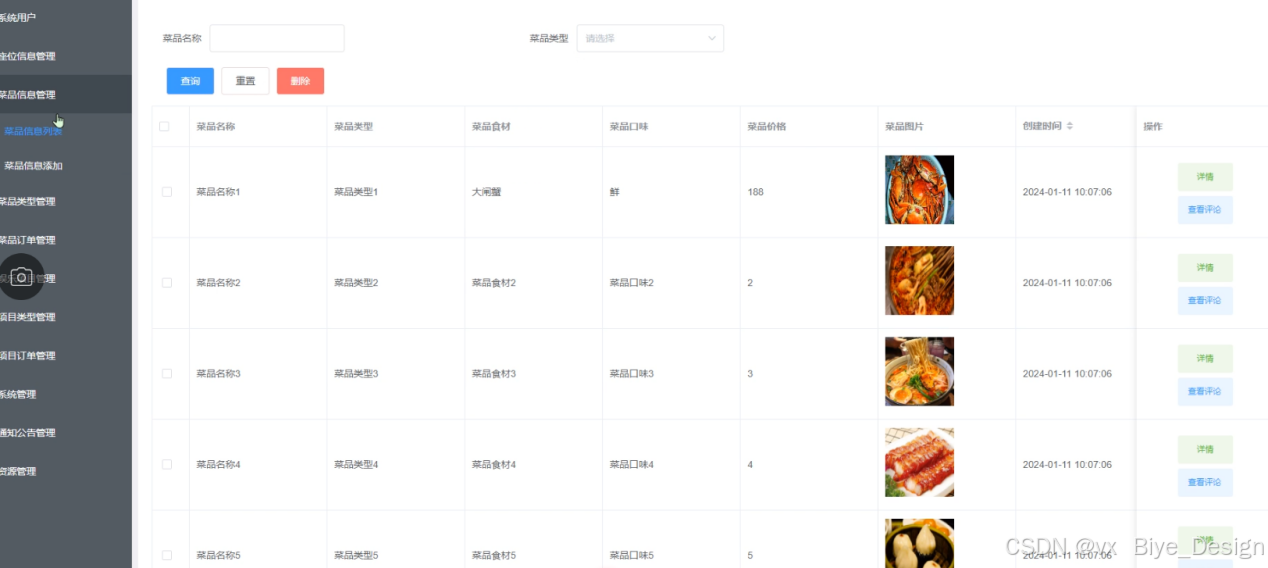 图5-6 菜品信息管理界面图