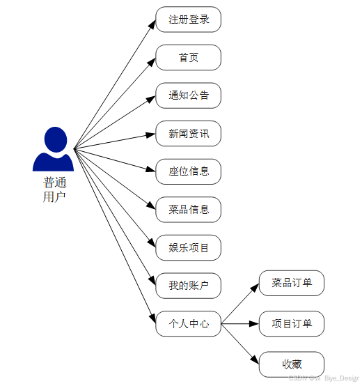 图3-1 springboot 餐饮娱乐行业收银管理系统普通用户角色用例图