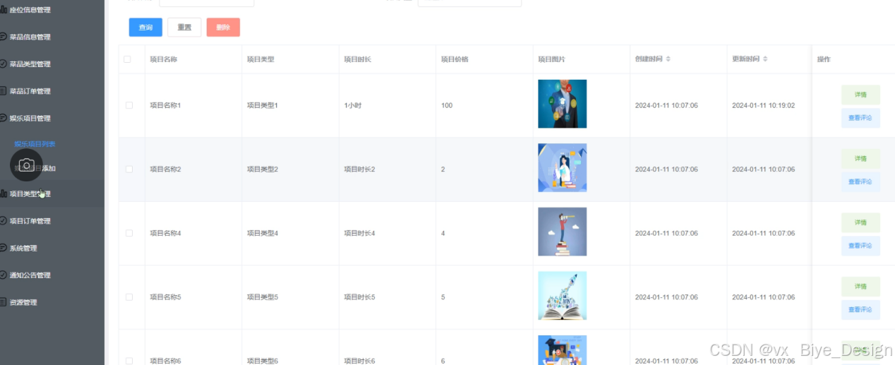 图5-7 娱乐项目管理界面图