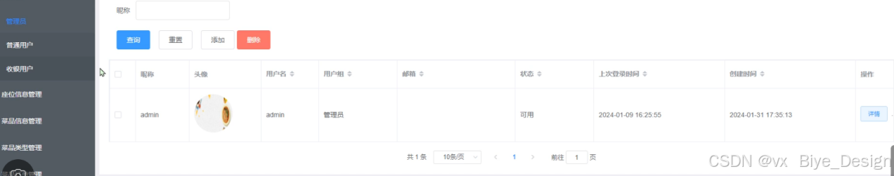 系统用户:管理员点击可查看管理员、注册用户,同时可对系统用户进行增删改查。详见图5-3。