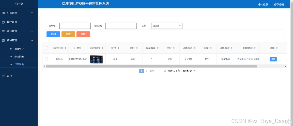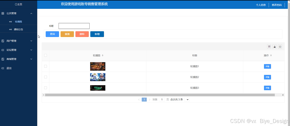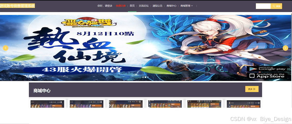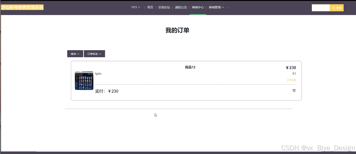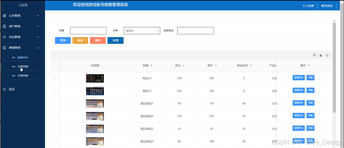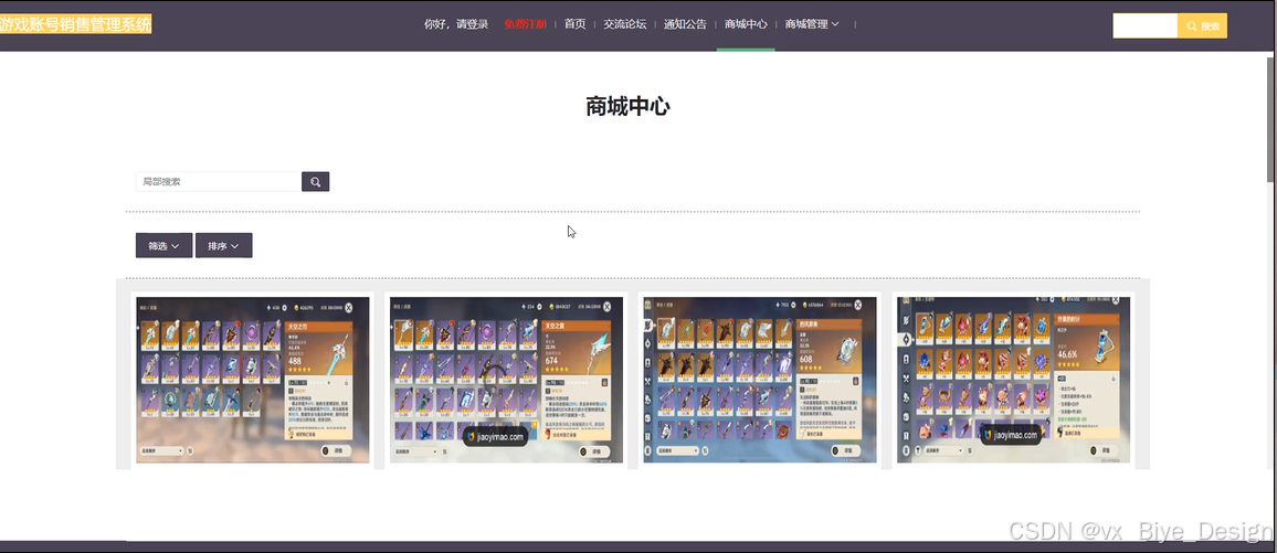 该系统主要包含以下几个核心模块:交流论坛、通知公告、商城中心和商城管理。交流论坛模块允许用户发布和浏览与游戏账号交易相关的讨论,增强用户间的互动与沟通。通知公告模块则用于发布系统更新、交易提醒等重要信息,确保用户及时获取最新消息。