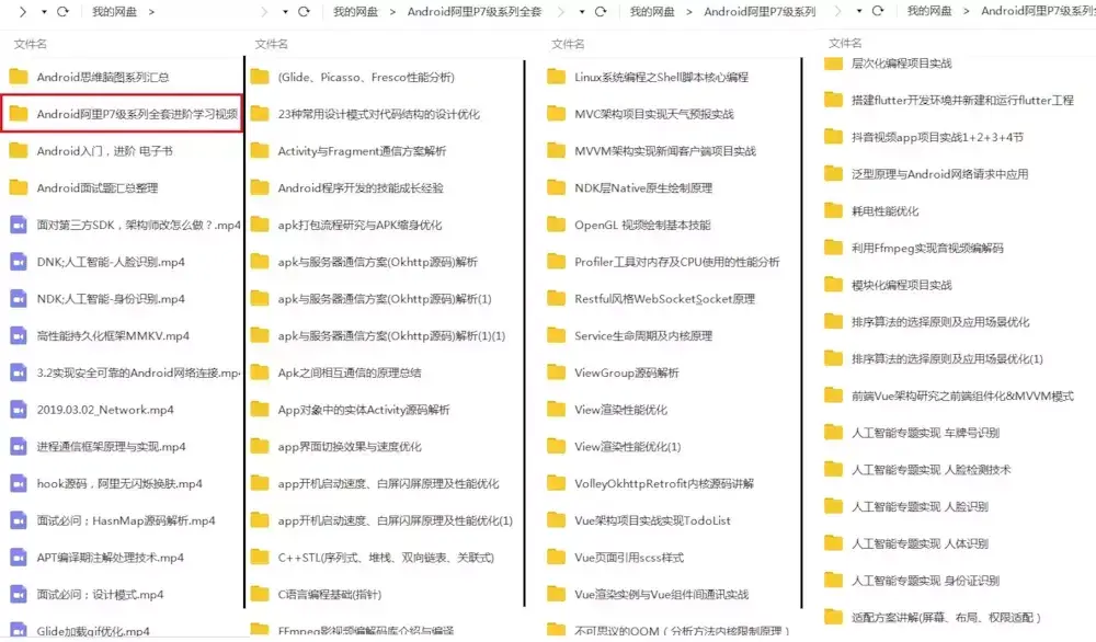 这里我为大家准备了一些我在面试后整理的面试专题资料,除了面试题,还总结出了互联网公司Android程序员面试涉及到的绝大部分面试题及答案,并整理做成了文档,以及系统的进阶学习视频资料分享给大家,希望能帮助到你面试前的复习,且找到一个好的工作,也节省大家在网上搜索资料的时间来学习。
