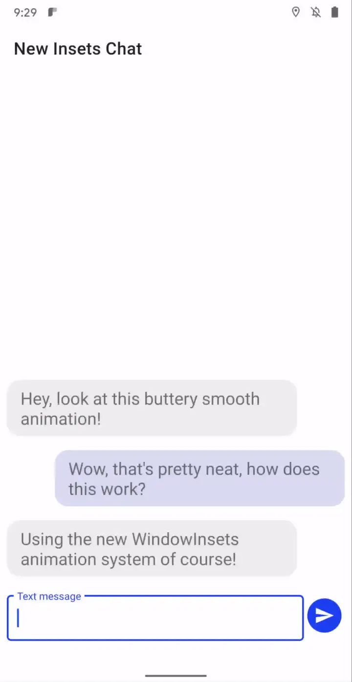 - 同步 IME 切换效果 - 使用新的 WindowInsets 和相关 API 为用户提供流畅的切换效果。详细信息请阅读 这篇博文。