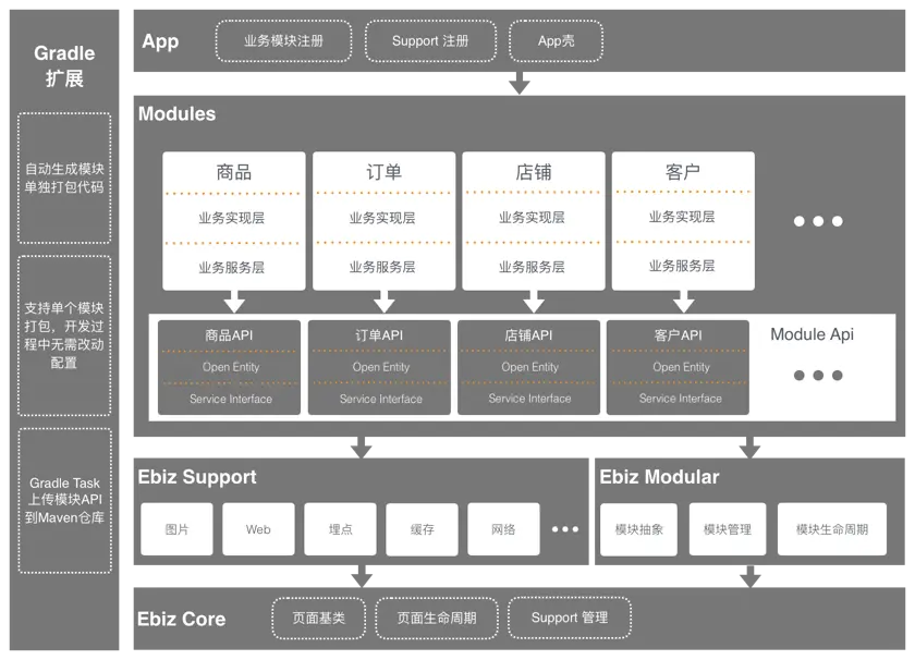 - 提出了 5 个调整方向:抽象基础模块、公共服务去中心化、业务模块服务化、抽象基础组件、单/多模块打包
