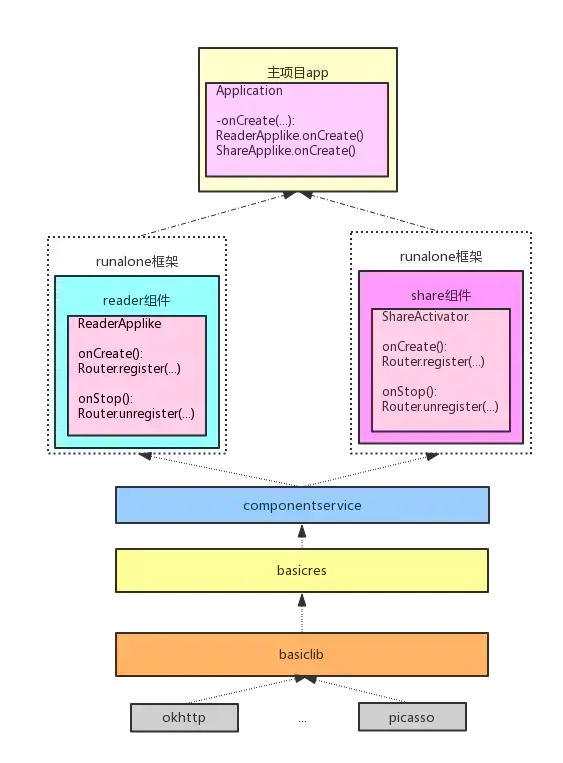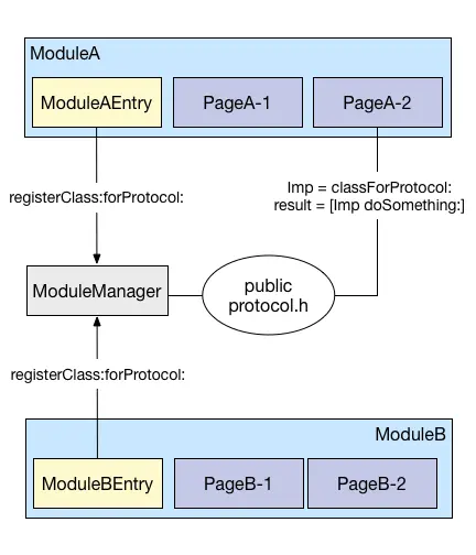 - 提到了组件间通信的实现:URL 统跳、协议下沉(需要有一个公共的地方来容纳这些 public protocl)、隐式 Intent