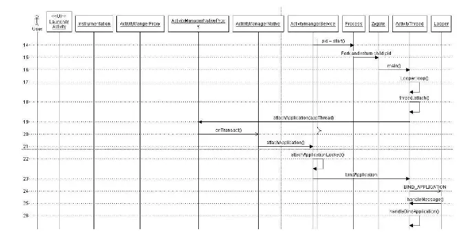 ①App发起进程:当从桌面启动应用,则发起进程便是Launcher所在进程;当从某App内启动远程进程,则发送进程便是该App所在进程。发起进程先通过binder发送消息给system_server进程;