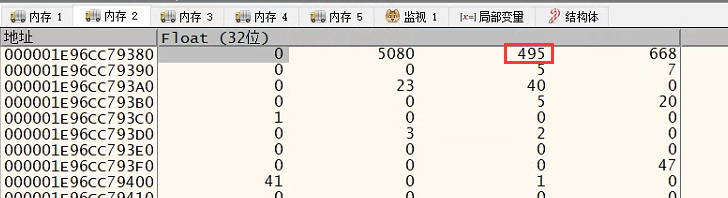 4.进入就会看到一个4字节浮点数数组,这样看可能不太明显,那么我们显示浮点数看看