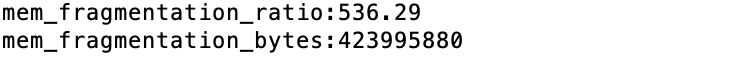 发现内存碎片率达到了536.29,说明服务中大多数内存的占用都是因为存在大量的内存碎片。
