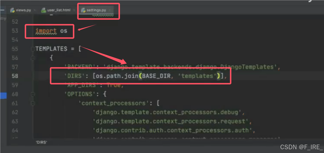 默认情况下是搜索app下的templates模板,但更改了以下配置就会访问根目录下的templates的模板。(看别人项目是需要注意!!!)