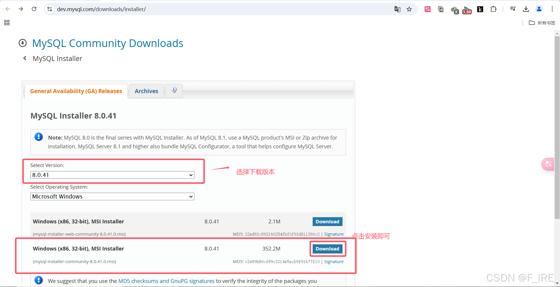建议下载 MySQL Installer(MySQL安装程序)