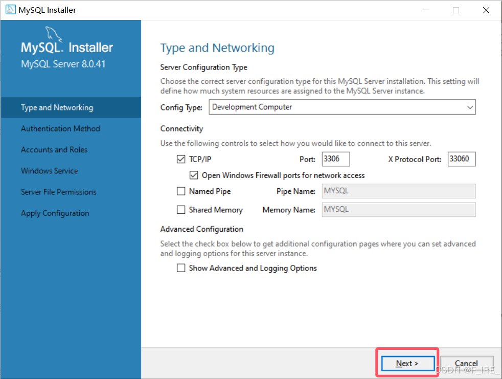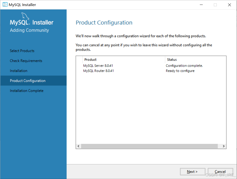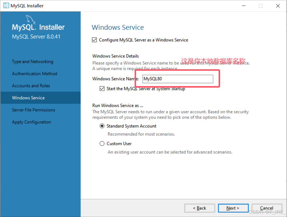 设置数据库名称(默认是MySQL80),点击next