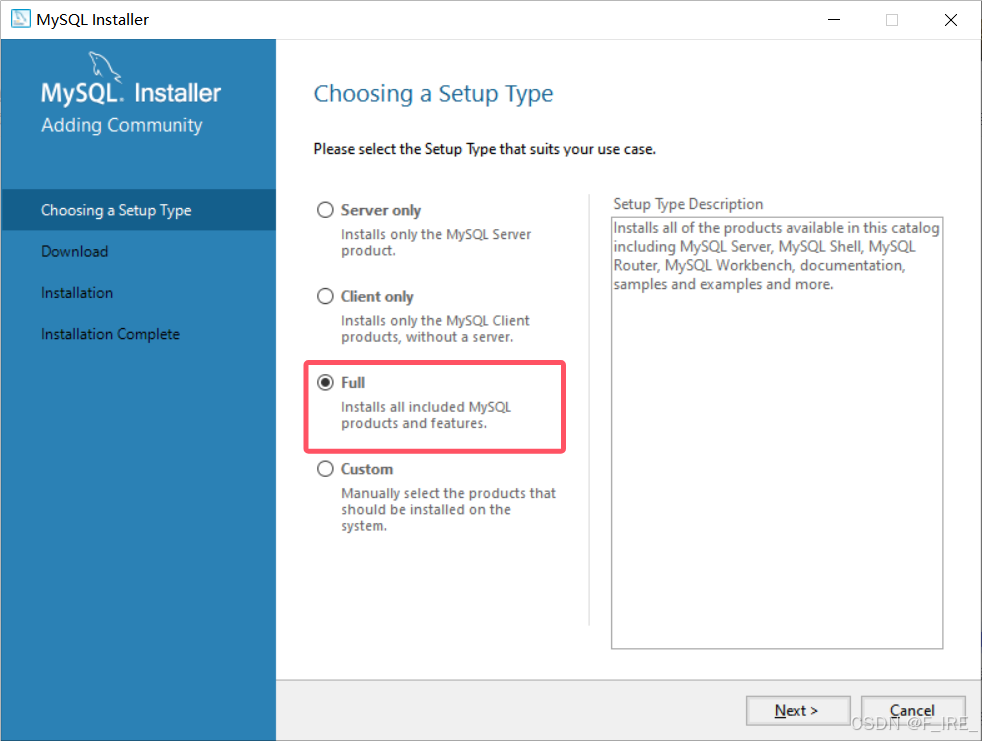再点击Full,点击next,即安装全部安装程序