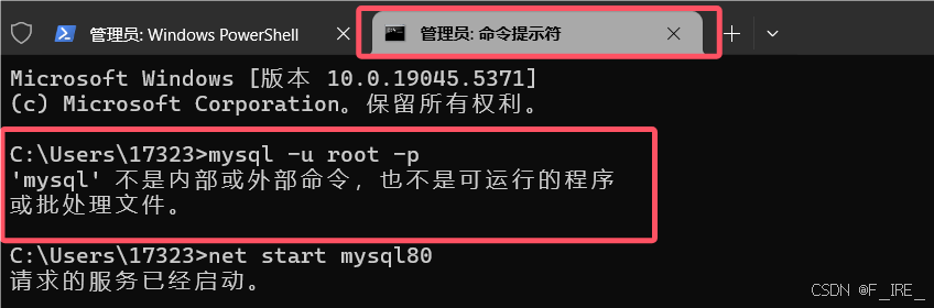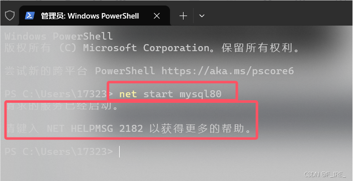 net start mysql80 #开启数据库命令,mysql80是你的数据库名称