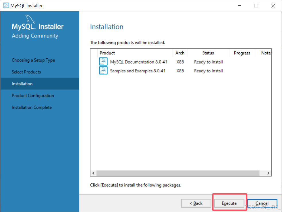 点击Execute安装