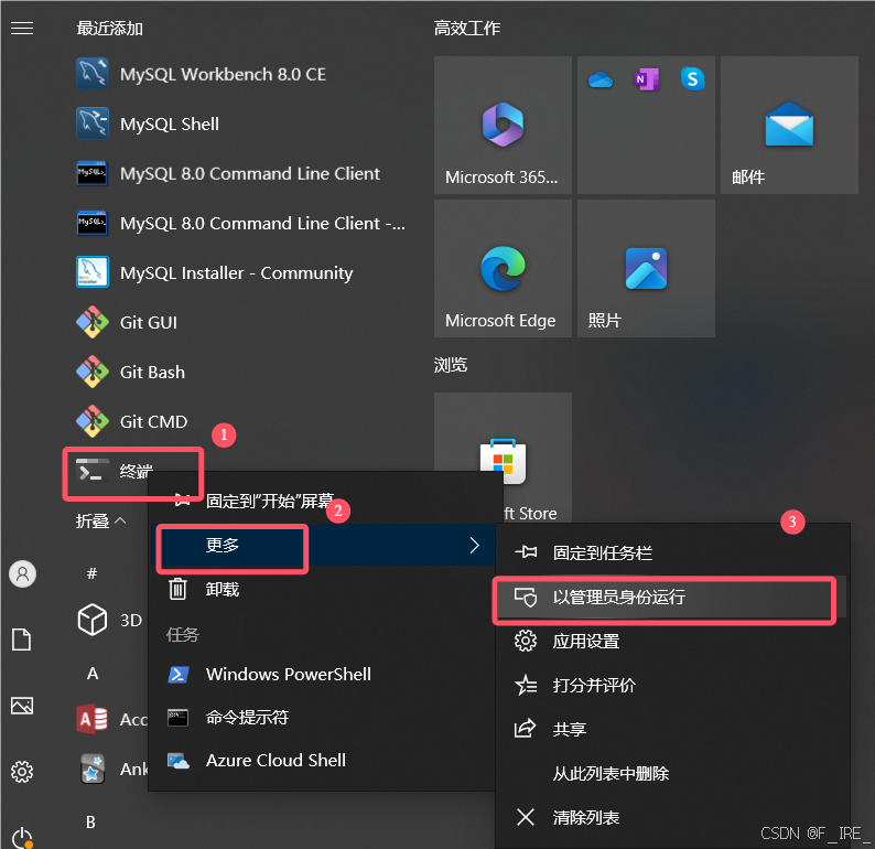 第一步:将终端以管理员身份运行
