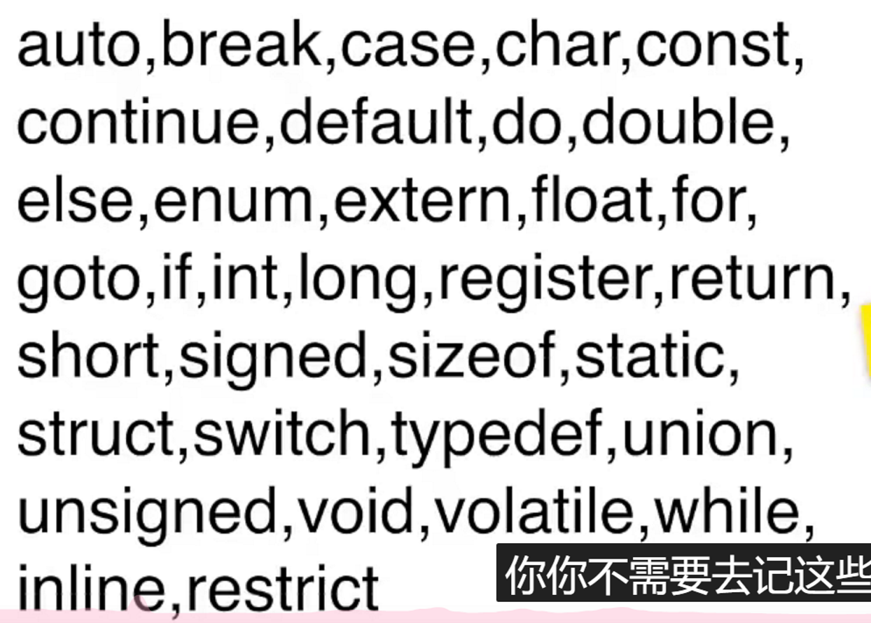c语言中的关键字有(这些关键字不需要可以记,后续在学的过程中就可以记住):