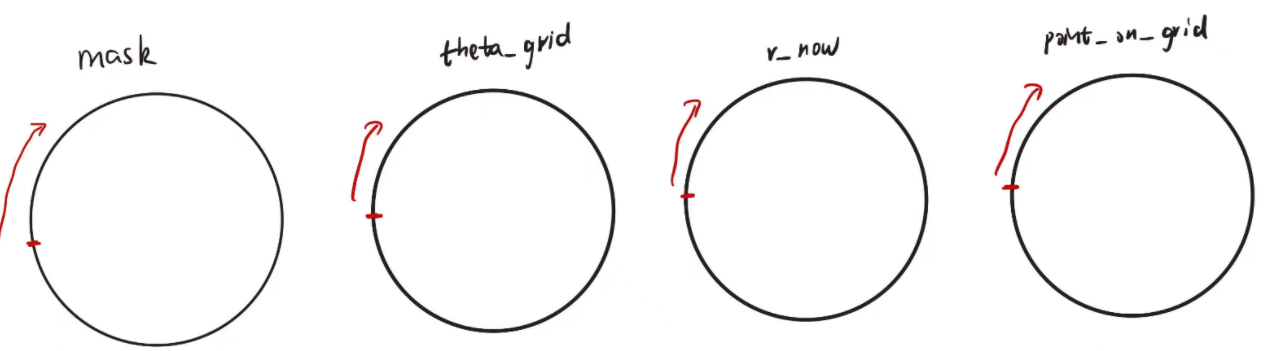 mask、theta_grid、r_now、points_on_grid这四个数组下标都是一一对应的。