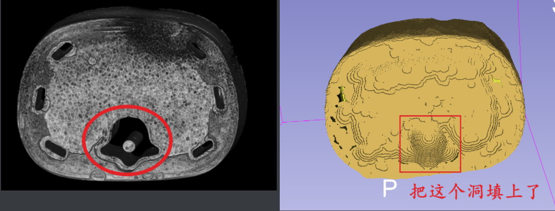 思路大概是先根据源数据形成三维mask,然后提取mesh,检查mesh的表面,我一开始以为水密性watertight是会检测表面是否有凹陷。如果有的话就填充。但是我对水密性这个概念有误解。满足水密性是说mesh表面完全封闭。3d建模时凹陷部位并不是一个“孔洞”,他只是凹下去了,并不是缺失,所以表面仍然是封闭的。