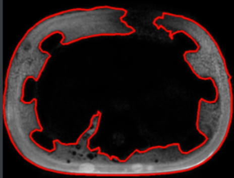 之后还是想着从轴面轮廓开始做,因为其中的操作我明白具体是什么。首先是对原始影像进行预处理,起码得出比较清晰的轮廓。当时想,对于轮廓严重缺失的,直接舍弃,例如下面的轮廓: