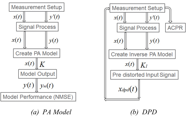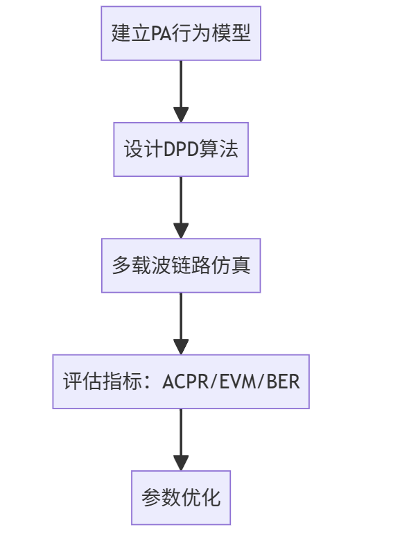 - 数学模型:基于Volterra级数或广义记忆多项式(GMP)描述非线性系统,考虑记忆效应(当前输入与历史输入的相关性)。