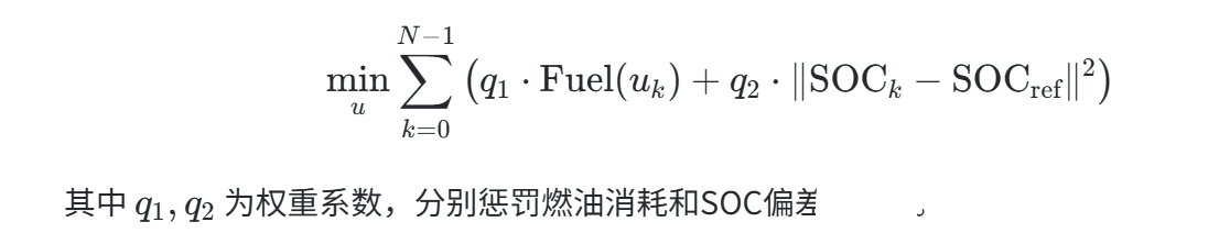 - 约束条件复杂:电池SOC(State of Charge)范围、电机转速/扭矩限制、机械制动扭矩非负性等硬约束。