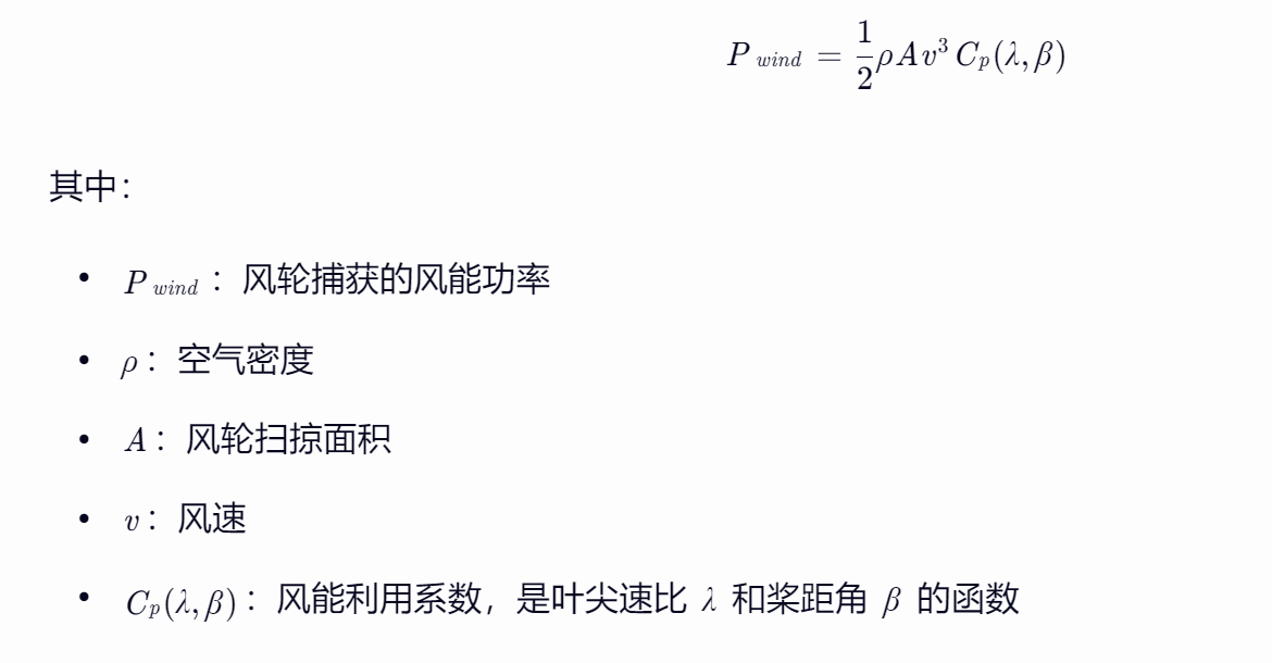 风力涡轮机从其转子叶片的扫掠区域中提取风的动能。给定风速和风力涡轮机轴上的转子速度 ωr 的空气动力扭矩由下式给出: