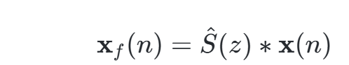 FxLMS(Filtered-x LMS)算法是LMS的扩展,专门用于处理存在次级路径(如声学延迟、电声器件响应)的主动噪声控制(ANC)系统。其核心改进在于引入次级路径模型S^(z)S^(z),对参考信号进行预滤波: