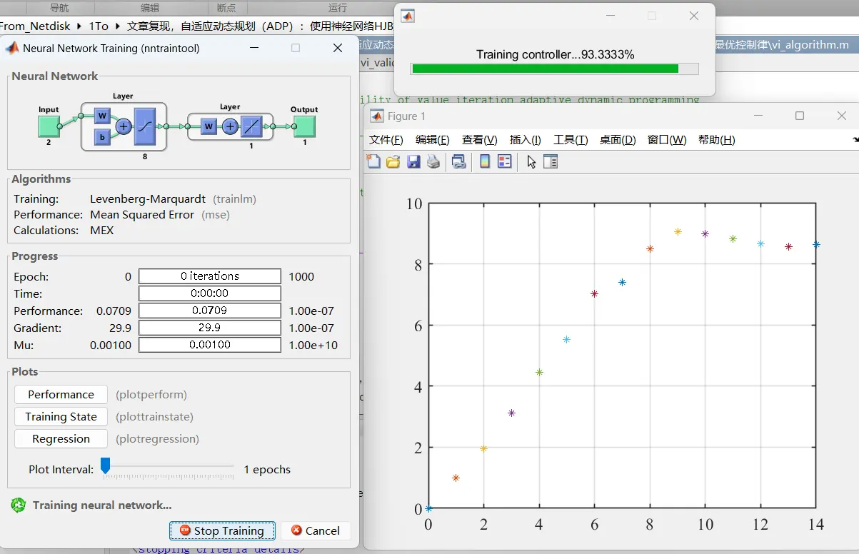 - 代价函数近似与优化:由于HJB方程的复杂性,直接求解其值函数往往非常困难。因此,我们运用神经网络强大的非线性逼近能力,对每个李雅普诺夫方程对应的代价函数进行近似。神经网络通过学习大量的输入输出数据,能够自动调整其内部参数,从而实现对复杂非线性函数的逼近。在近似过程中,我们采用了最小二乘法作为优化算法,在初始稳定控制器的吸引区域内对神经网络的参数进行优化。最小二乘法能够有效地减小预测值与实际值之间的误差,提高神经网络的逼近精度。通过不断调整神经网络的阶数和参数,我们能够逐步提高代价函数的近似效果。