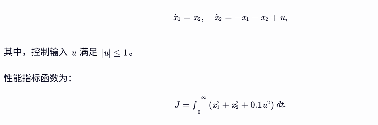 非二次型性能指标:引入非二次型性能指标函数,如: