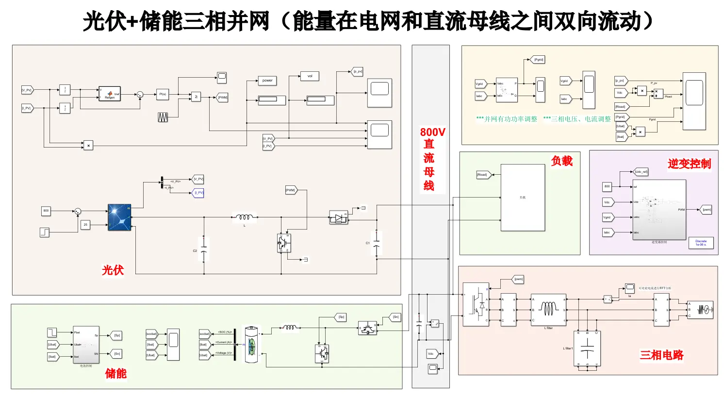 - 系统仿真:利用Matlab/Simulink等仿真软件搭建光伏+储能三相并网系统仿真模型,验证控制策略的有效性和可行性。