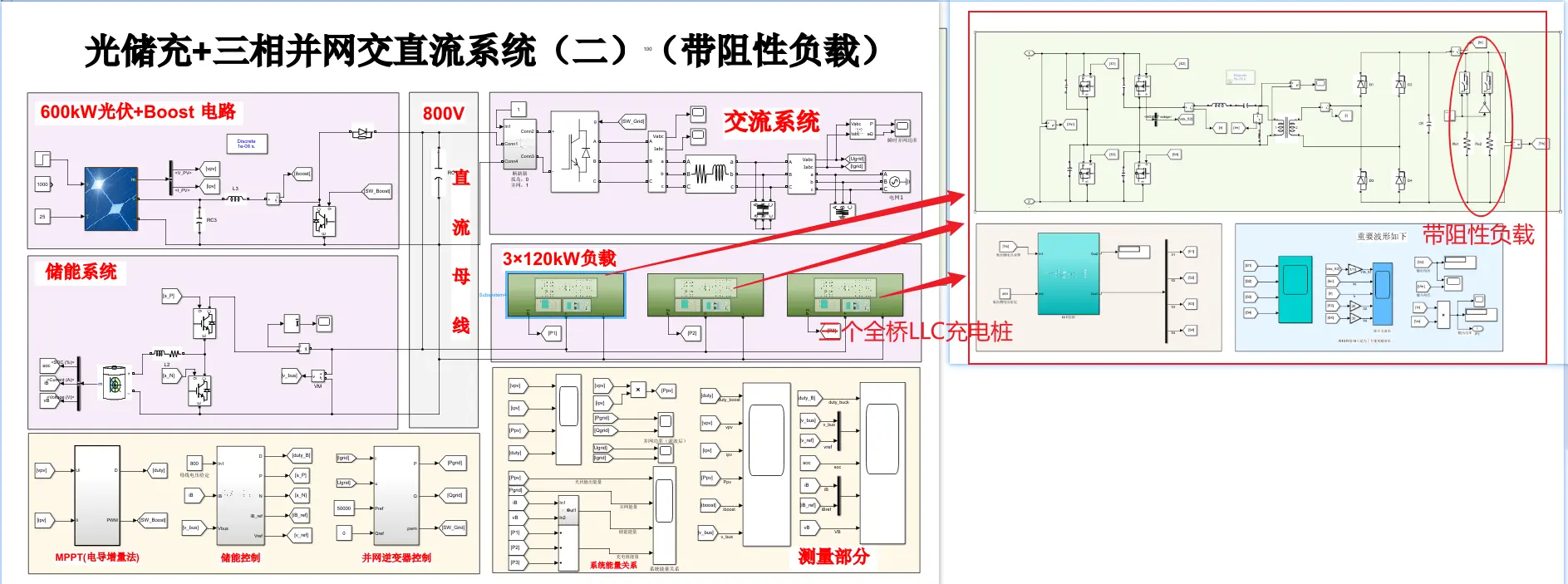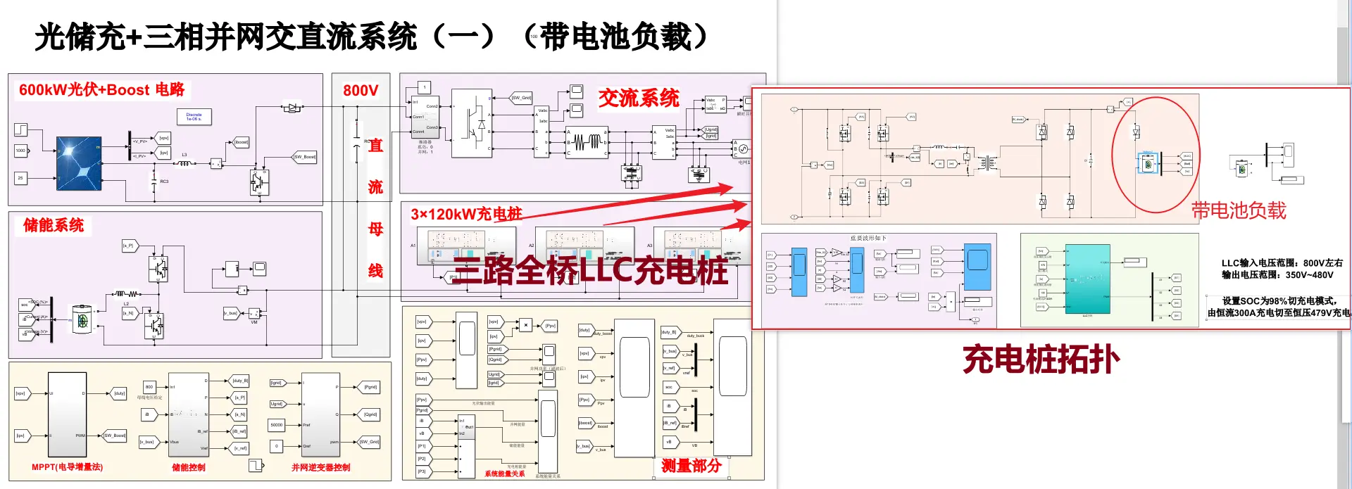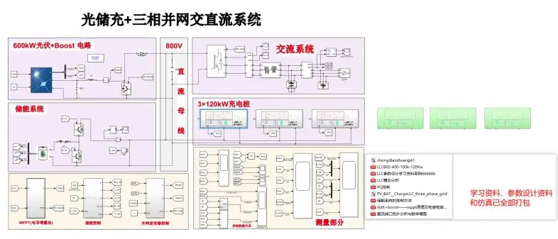 光伏储能、SPWM、充电桩、全桥 LLC 谐振变换器、PQ 控制、电导增量法、三相并网