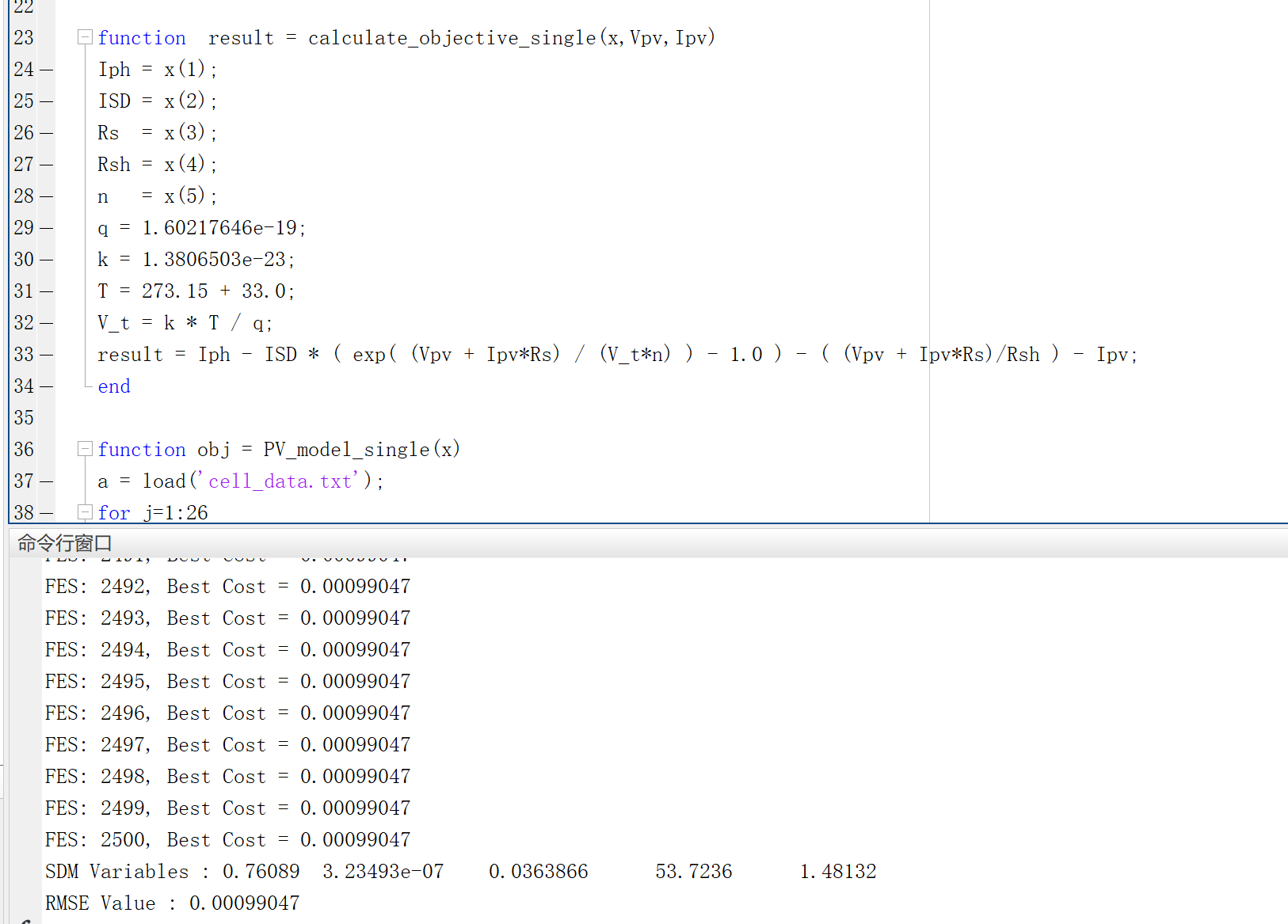 - 单二极管模型(SDM) :参数估计误差(RMSE)可降低至10−410−4量级。
