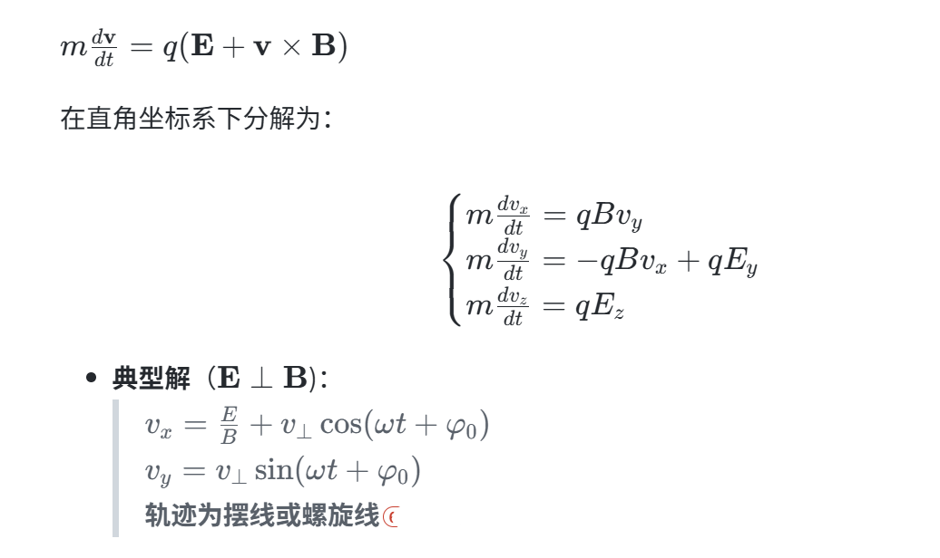 粒子受力满足牛顿-洛伦兹方程: