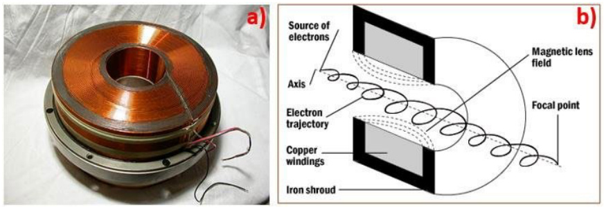 - 原理:通电线圈产生轴对称磁场,电子沿螺旋线聚焦。