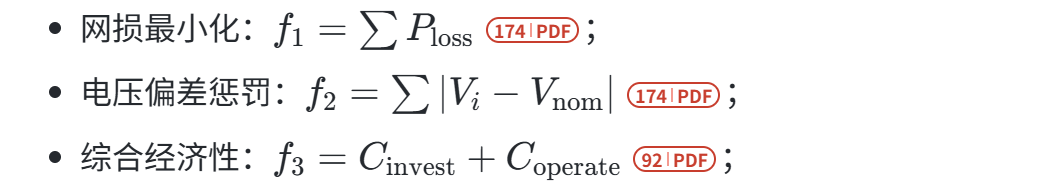 - 权重法:为不同目标分配权重(如网损60%、电压30%、成本10%);