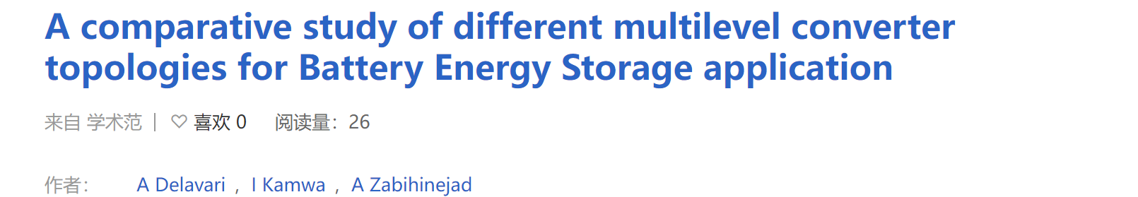 已经对NPC、Z源、准Z源、级联和电容夹紧等五种多电平变换器拓扑进行了研究和比较,从THD、效率、所需半导体数量和其他重要特性等方面,以找到最适合在电池储能系统(BESS)应用中使用的拓扑。结果证明,级联拓扑性能优于其他类型。选择这种拓扑有三个原因。首先,进行了效率和可靠性研究,发现相对于其他拓扑,CMLI具有最高的效率和可靠性,并且具有最小的功率损失。其次,它将电池串联分割,并增加了高电压功能。最后,电容体积、成本和THD研究再次证实了该拓扑在电池储能系统中的有效性。