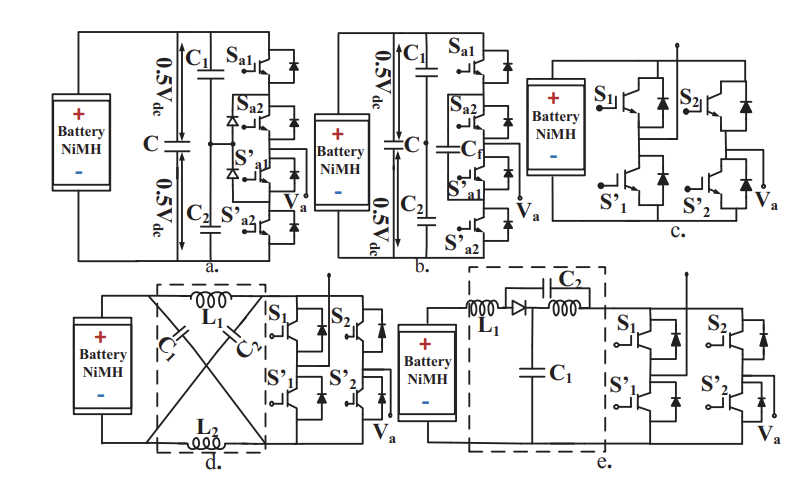 - 结构:通过飞跨电容器调节各级电压,实现多电平输出。